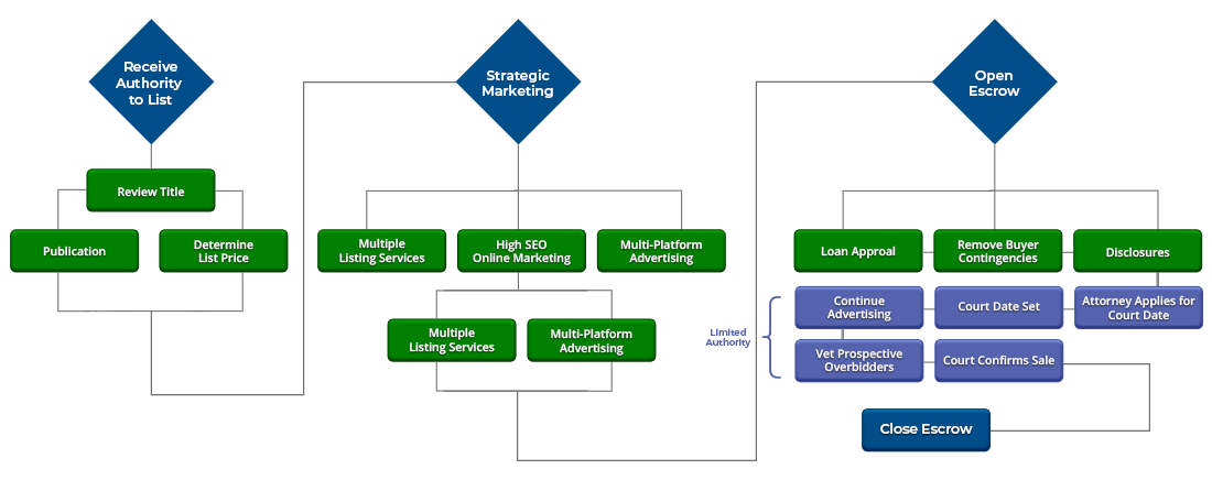 When handling the probate process, the initial step is to be granted the authority to list. There are numerous steps of importance that follow. An agent must not only be a top producer, but also an expert in the demands of the Probate Real Estate Process. The John Diaz Group provides such expertise: